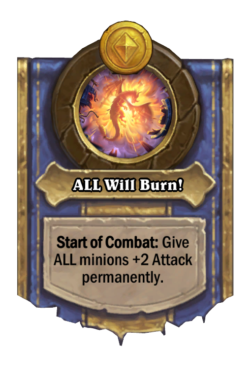 Start of Combat: Give ALL minions +2 Attack permanently.